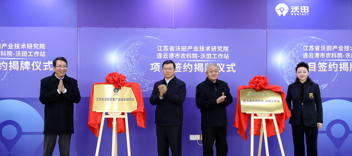 1月25日上午,市農科院與江蘇沃田集團在沃田研發中心舉行“江蘇省沃田漿果產業技術研究院”、“連云港市農科院沃田工作站”簽約及揭牌儀式。市委副書記胡建軍,市政協副主席、市農科院院長徐大勇,區委書記呂潔,沃田集團董事長徐燁出席活動。趙統利 代表連云港市農科院與江蘇沃田集團股份有限公司劉偉總裁簽約合作協議,區委副書記臧國徽主持。