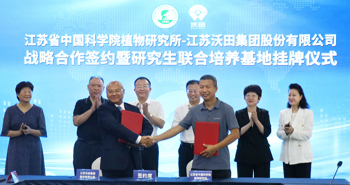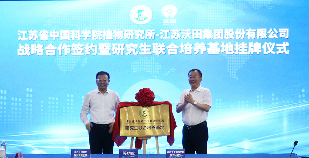 7月9日上午,沃田集團(tuán)與江蘇省中國科學(xué)院植物研究所戰(zhàn)略合作簽約暨研究生聯(lián)合培養(yǎng)基地揭牌儀式在和安湖國際大酒店舉行,江蘇省中國科學(xué)院植物研究所黨委書記楊天水、紀(jì)委書記金健,連云港市副市長宋波,市農(nóng)業(yè)農(nóng)村局局長陳鳳,贛榆區(qū)區(qū)長李莉,區(qū)委常委、副區(qū)長楊國忠出席儀式。