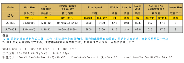 油脈沖氣動扳手UL-80S/ULT-80S