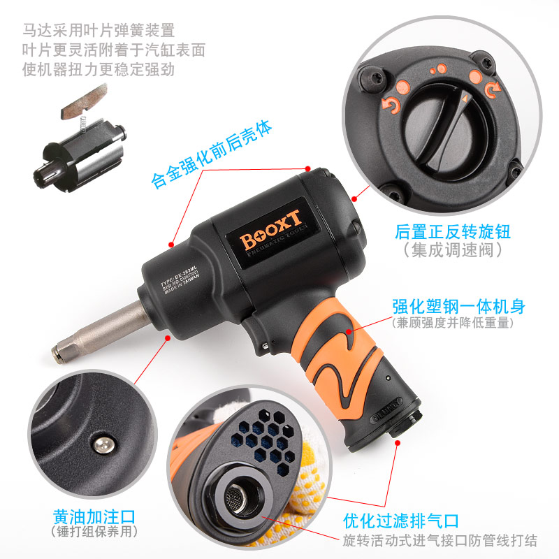 加長軸風扳手特點:(塑鋼外殼,強度更高不變形,提高耐用度)