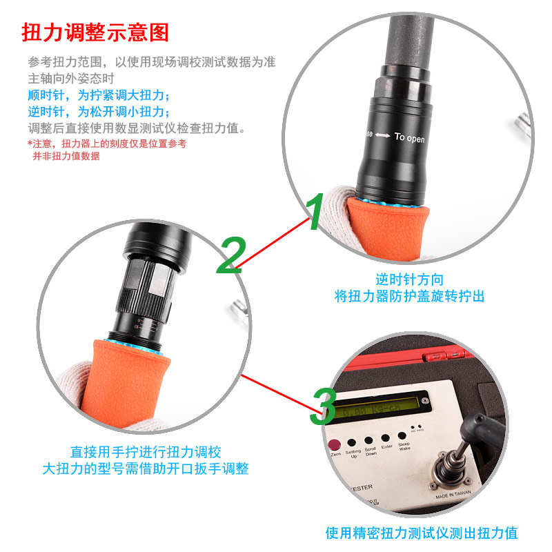A.外調式:不用帶任何工具,也不用拆卸機器就可以直接在機器上調節扭力。